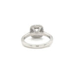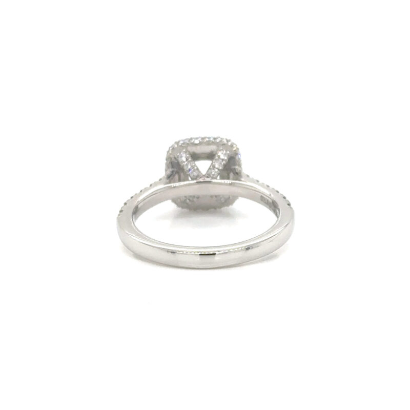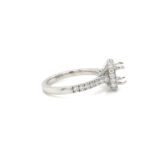 A semi mount setting for a halo diamond ring with shoulder stones setting in platinum mount