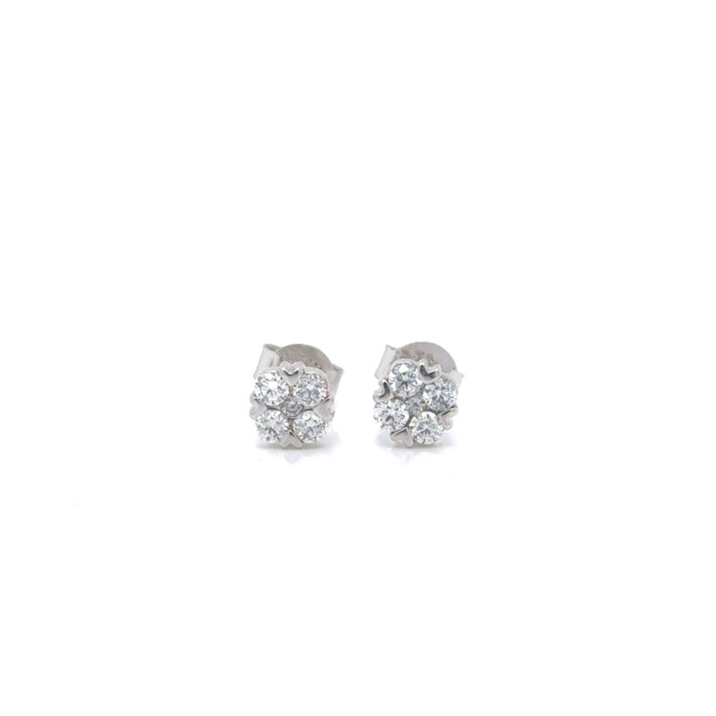 A cluster ear studd with lab grown diamonds in 18K white gold metal.