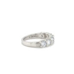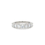 A WEDDING BAND WITH HALFWAY DIAMONDS WITH PLATINUM METAL.