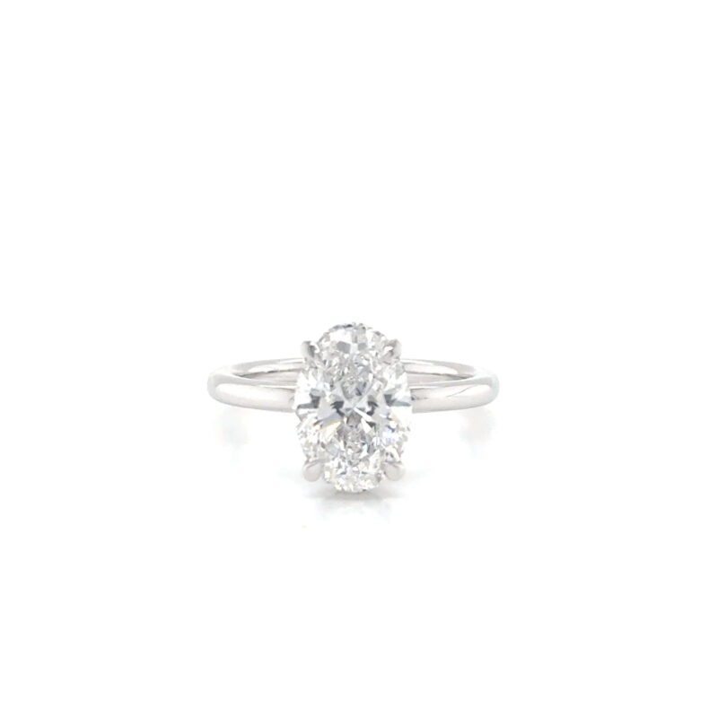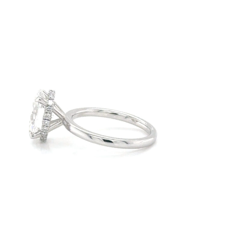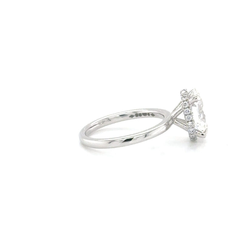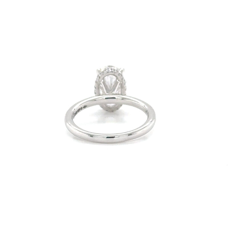 An underneath halo ring 2 carat (approx) centre diamond setting in platinum metal.